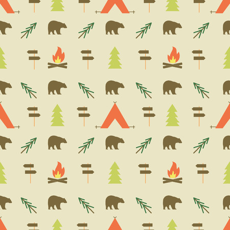 キャンプ 要素 Pattern Seamless 壁紙 Design 装置 ために 背景 Print 冒険 あるいは ギヤ テント 印の ポスト 木 Bonfire 自然 イラスト K Fotosearch
